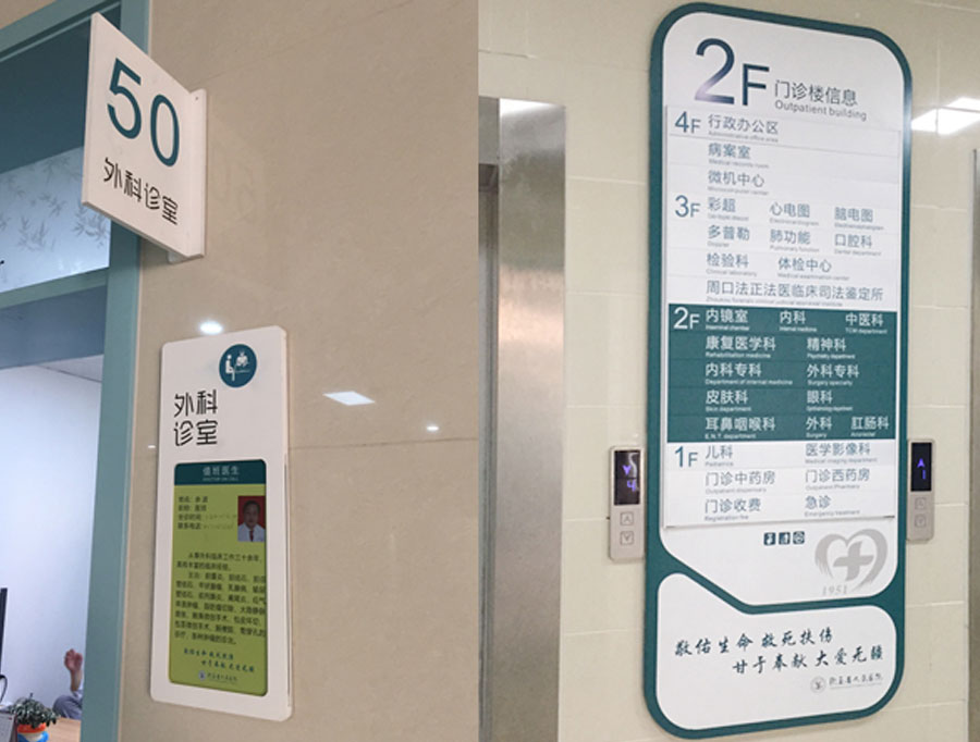 對于醫(yī)院來說,首先設(shè)計人員要根據(jù)醫(yī)院的整體環(huán)境進(jìn)行設(shè)計,醫(yī)院標(biāo)識牌的顏色都是選擇暖色調(diào)的顏色,避免出現(xiàn)大紅大紫,影響病人的情緒,啟用暖色調(diào)對病人的情緒起到安撫的作用。